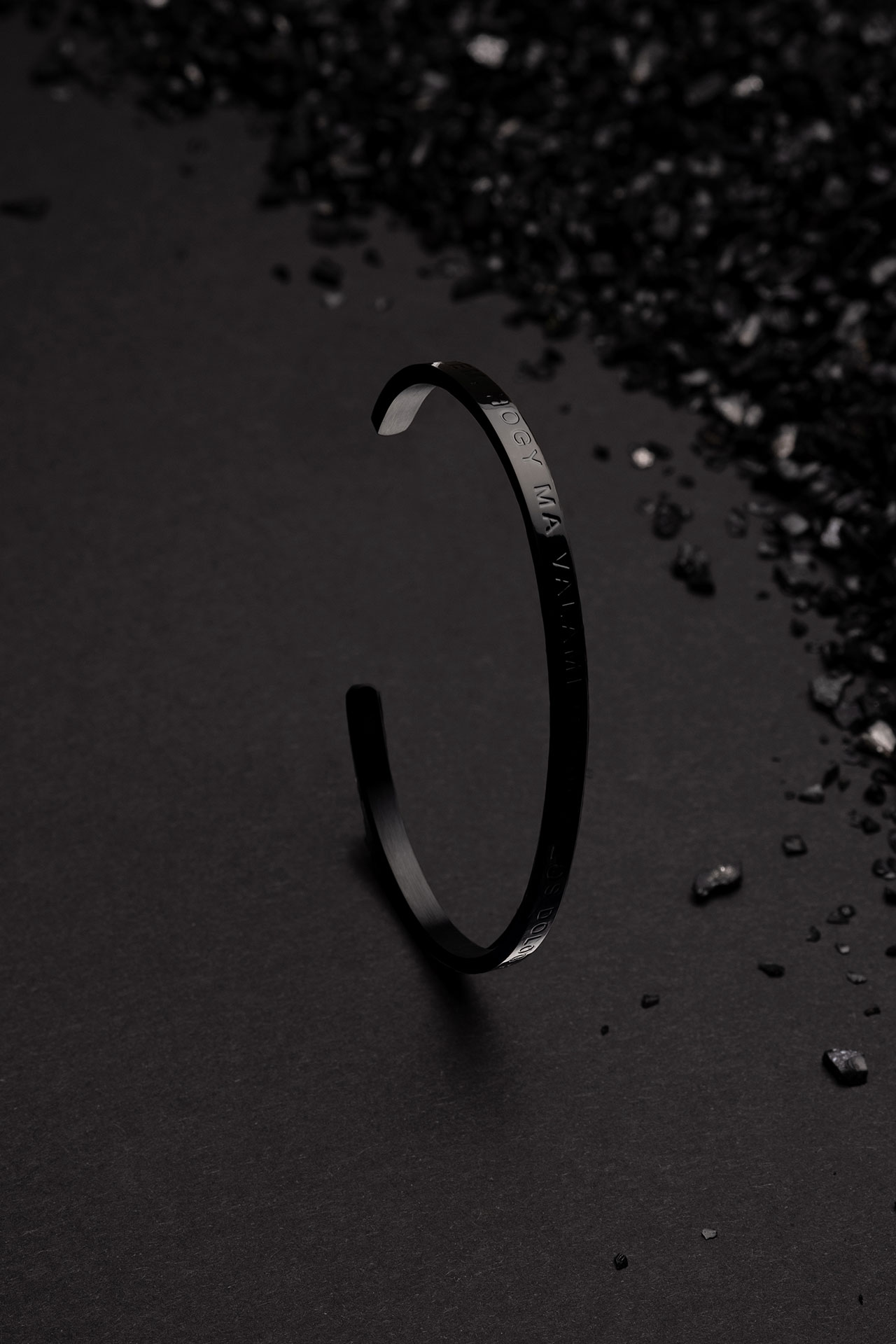 Ez a minimalista fekete tónusú, gravírral ellátott unisex karperec, egy olyan klasszikus darab, ami bármelyik öltözethez és bármelyik időszakban jól mutat. Tökéletes választás nőknek és férfiaknak egyaránt. Az állítható méret segítségével bármilyen csuklóra tökéletesen illeszkedik. Vidd magaddal mindenhová ezt az életfilozófiát!